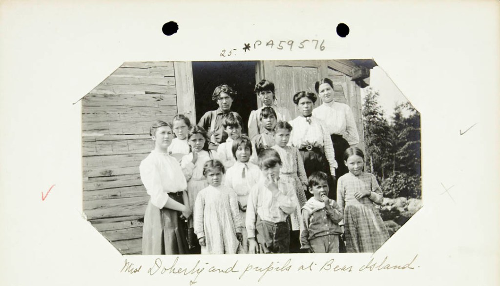 Federal day schools were key to the Department of Indian Affairs’ policy of assimilation through schooling. When the Bear Island Day School opened in 1903, the Teme-Augama Anishnabai lived a seasonal lifestyle, spending winters on their family hunting territories and summers together on Bear Island. The school fit Anishnaabeg seasonal migrations as well as nomadic colonialism, allowing children to receive Anishnaabeg education primarily in the winter and Euro-Canadian schooling in the summer.