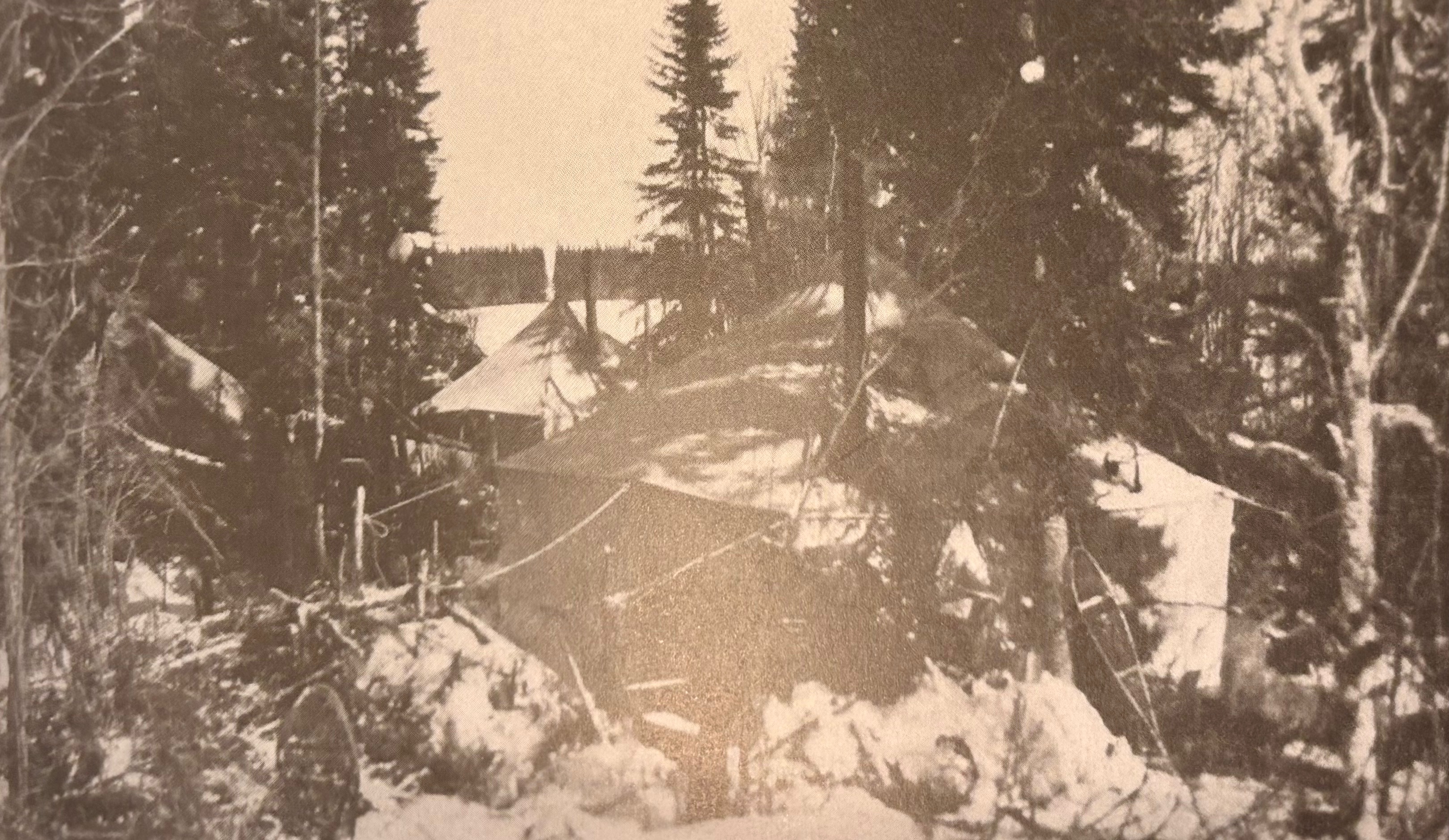 Surveyors’ camp in winter. Photo from Great Lengths: A Celebration of the Surveyors of Ontario by Charles Wilkins (Toronto: Association of Ontario Land Surveyors, 2017), 73.
